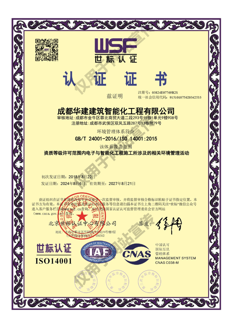 項目名稱:綿陽市游仙區激光產業基地項目二標段 弱電工程; 公司簡介:項目名稱:綿陽市游仙區激光產業基地項目二標段弱電工程施工單位:成都華建建筑智能化工程有限公司工程地點:四川省綿陽市施工內...